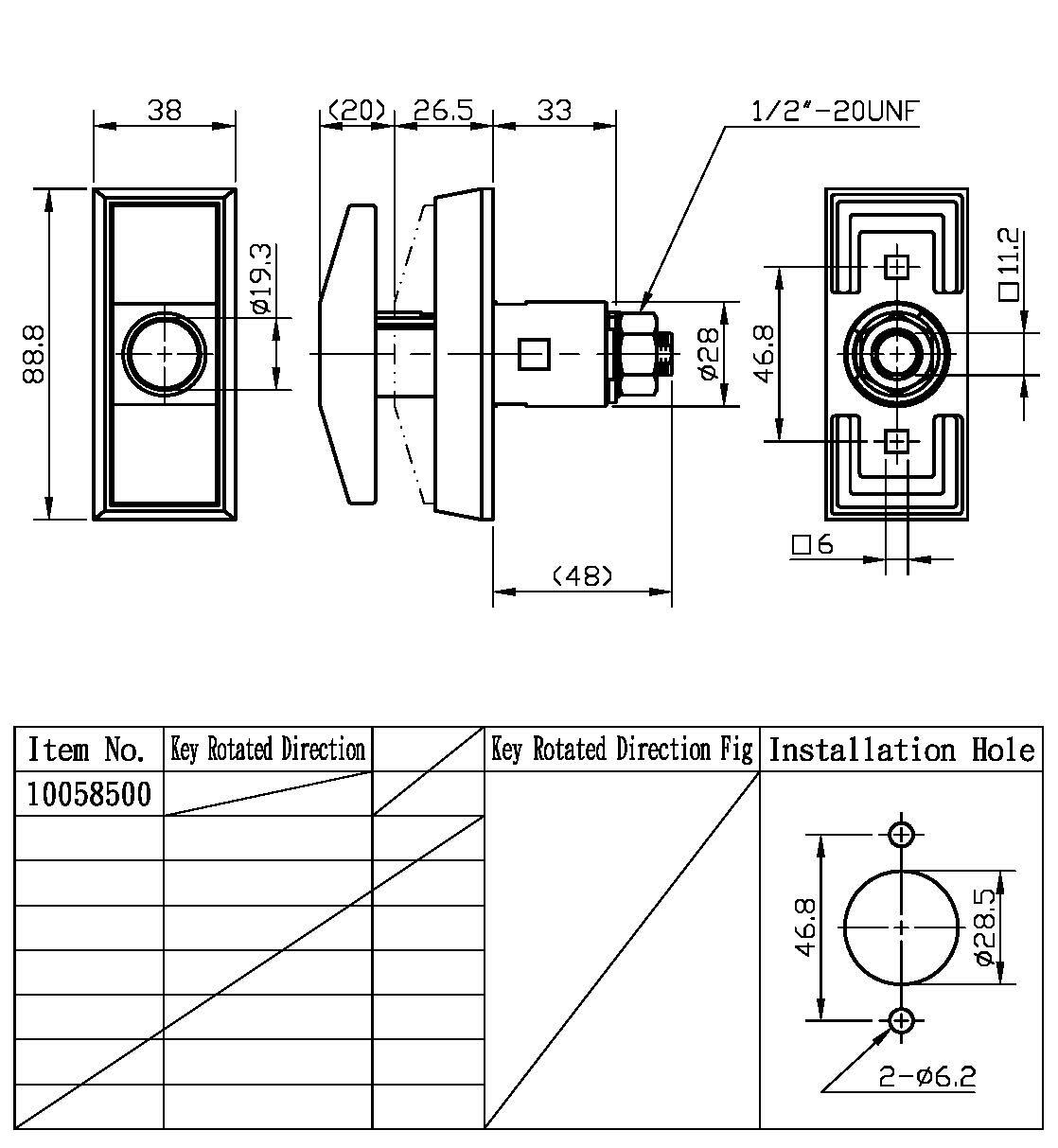 2. このTハンドルには、ABAのロックシリンダーの次のモデルを使用できます。#101531、#102501、#102522、#108501など