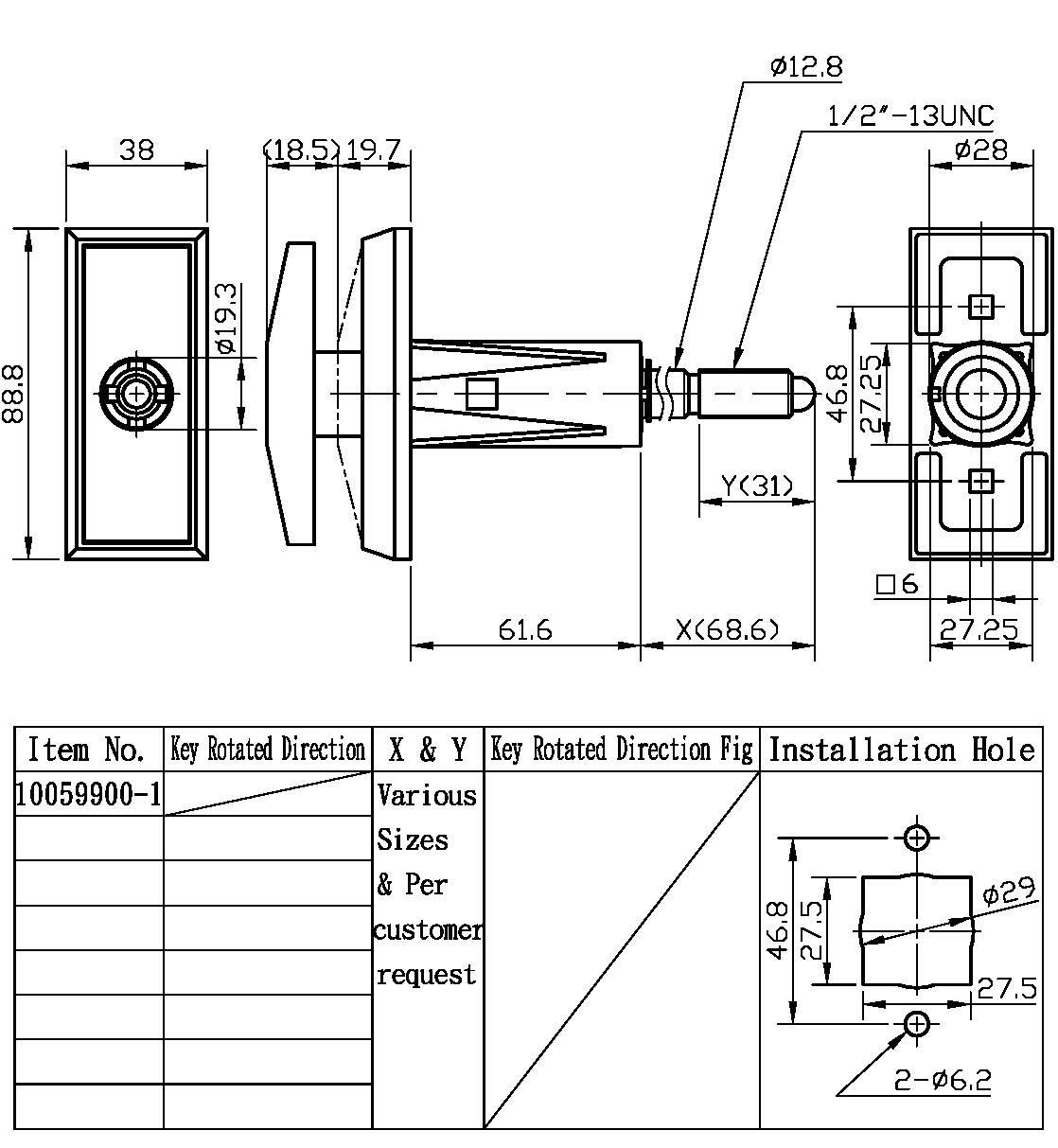 2. このTハンドルには、ABAのロックシリンダーの次のモデルを使用できます。#101531、#102501、#102522、#108501...など