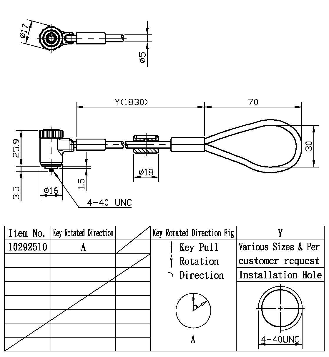 6、ねじの種類はNo.4-40UNCから選択してください。(これはお客様の選択項目です。例:No.10-24UNC、M5x0.7など)