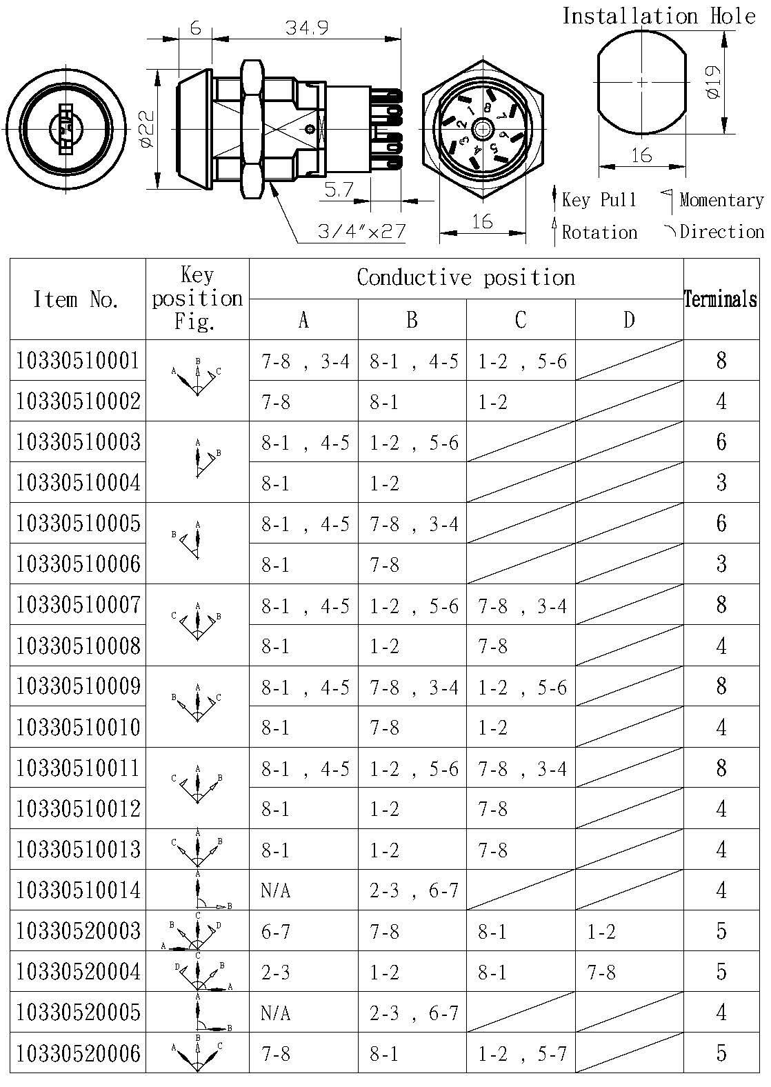 7. キーの回転角度、キーの挿入方法、スプリングリターン機能はお客様のオプションです。