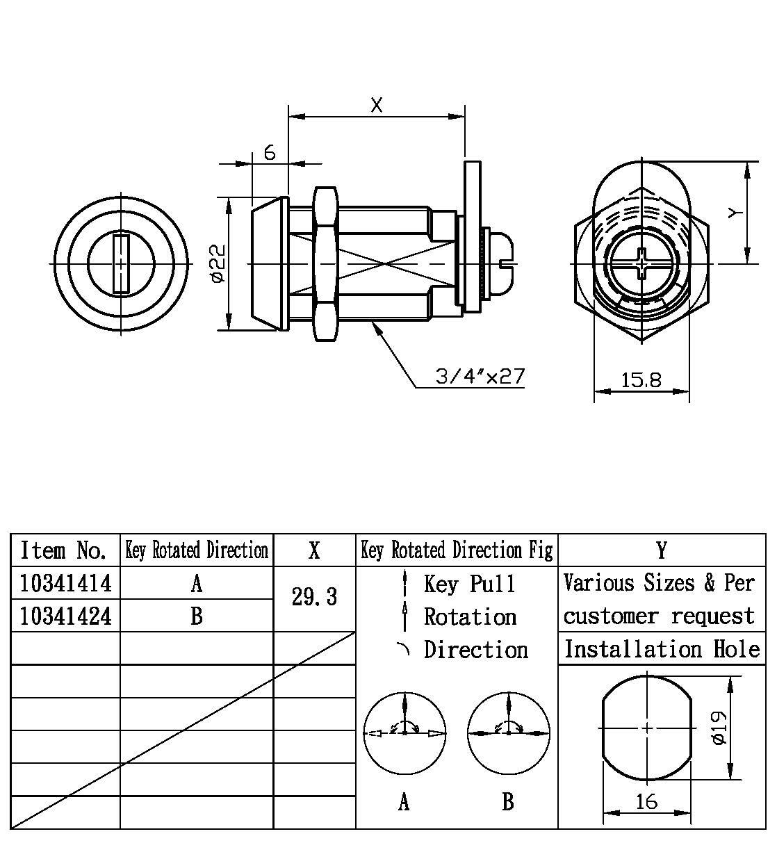 付属品: ナットとカム (お客様のご要望に応じてカム「A」を参考としてご指定ください)