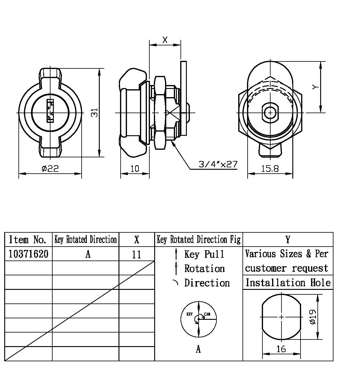 6. 付属品: ナットとカム (お客様のご要望に応じてカム「Y」もご用意しております。参考までに)