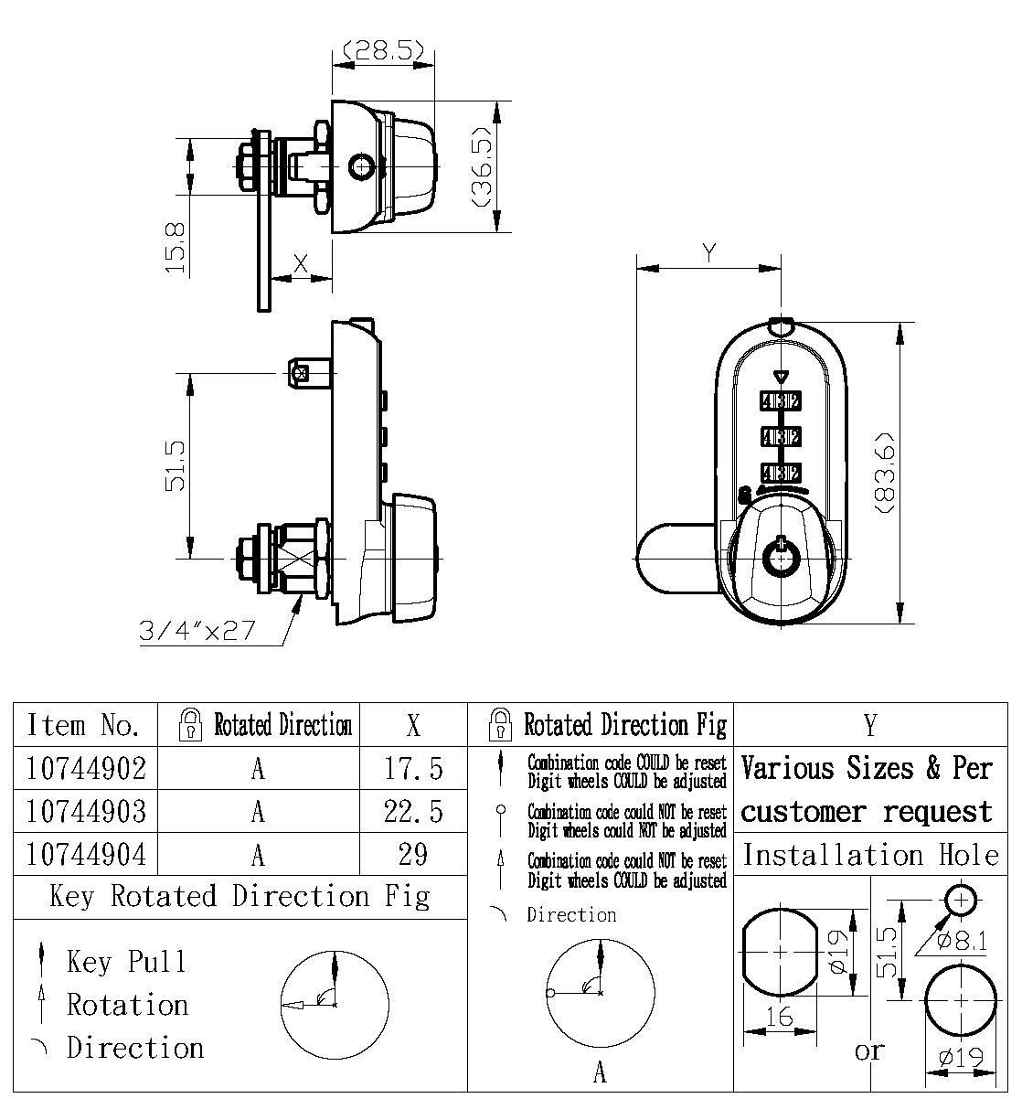 コンビネーションロッカーロック - 3桁カムロック